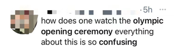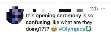 在推特上,“迷惑”(confusing)成了评价东京奥运会开幕式出现频率比较高的一个词。↓