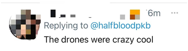 还有人看上了开幕式中的无人机表演:“这些无人机真酷。”↓
