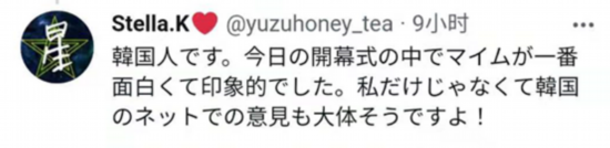 一位自称是韩国人的网友,用日语留言道:“开幕式所有表演中这个环节最有趣,给我留下了很深的印象,不仅是我个人的看法,韩国网络上大多都这么认为!”↓