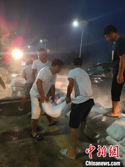 23日18时许,记者发现107国道西侧路面上已经有积水,而且在不断加深,为了防止107国道西侧的水流到东侧,当地村民自发用沙袋或石灰粉封堵道路中间的隔离带缺口。