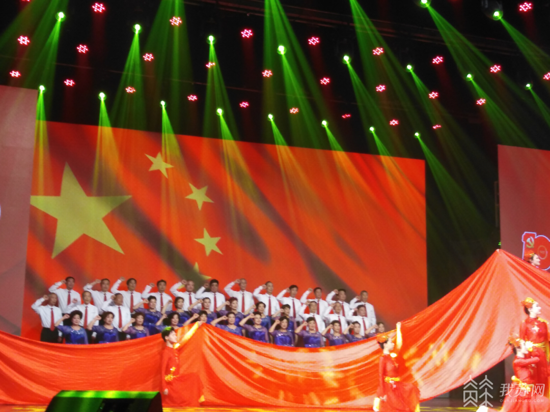 演出在新改编的歌舞《没有共产党就没有新中国》中拉开帷幕。它是由宜兴市老干部大学艺术团的38名演出人员参加合唱。“虽然是一个大家熟悉的合唱歌曲,但为了跟舞蹈有机结合,所以对其主旋律和节奏全部进行了调整改编,从而成为了一个完全不同的歌舞节目。由于省里最终发来作品音乐与节奏时距正式演出只有3天时间,合唱团对合唱的节奏、队员的演出服装等都要作出及时的调整,队员们体现出较强的团队意识、吃苦精神和奉献精神。平均年龄在65岁以上的队员们冒着高温酷热、反复排练、不计报酬,精神令人动容。他们饱满的热情、抖擞的精神、完美的演绎,赢得了台下观众阵阵掌声。”宜兴市老干部大学艺术团团长蒋俊臣说。