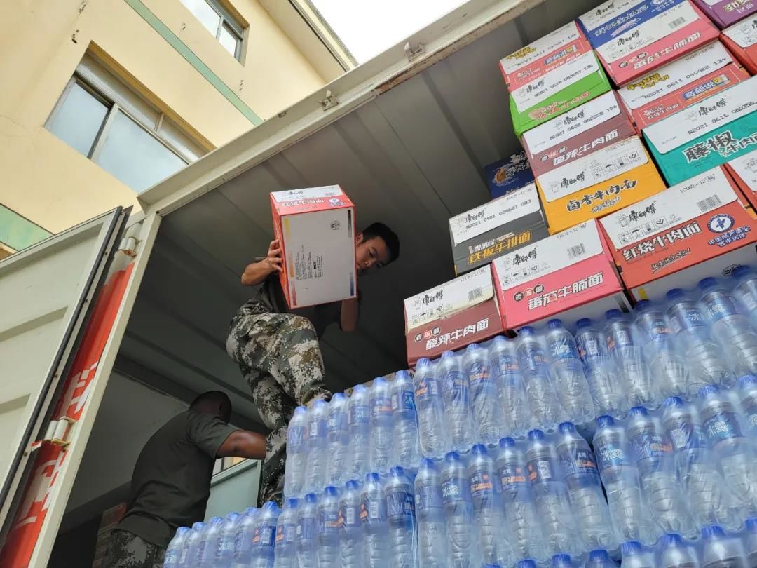 一通电话一拍即合。说干就干,吴凯凯和周文涛立即与同事交接好手头的工作,由吴凯凯出资,两人利用中午时间冒着高温紧急采购了200箱矿泉水、100箱方便面和100箱面包。考虑到物资较多,吴凯凯还从自己家里开来了一辆厢式卡车,平日里,吴凯凯也常开着这辆卡车开展志愿服务工作。