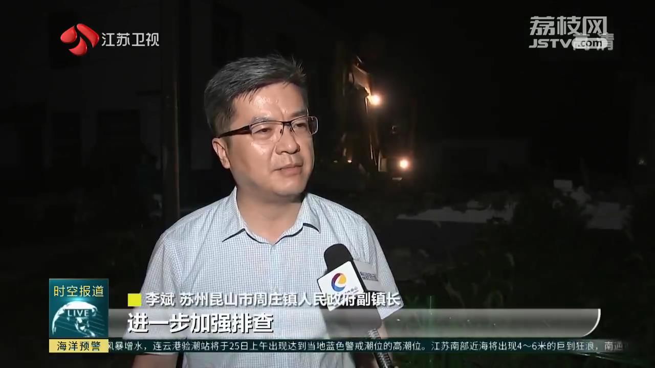 在北太湖大堤望亭段,当地志愿者正不间断沿着太湖堤岸巡查。去年,受降雨影响,加上常年的风浪冲刷,该堤段毁损严重,目前受损堤段已经全部修复完毕,挡墙顶高已经达到5.5米,远高于太湖3.8米警戒水位。同时,苏州开始加大外排水量,增加河道的调蓄空间。昆山加大排查房屋安全隐患,连夜对发现的周庄一处危房紧急拆除。