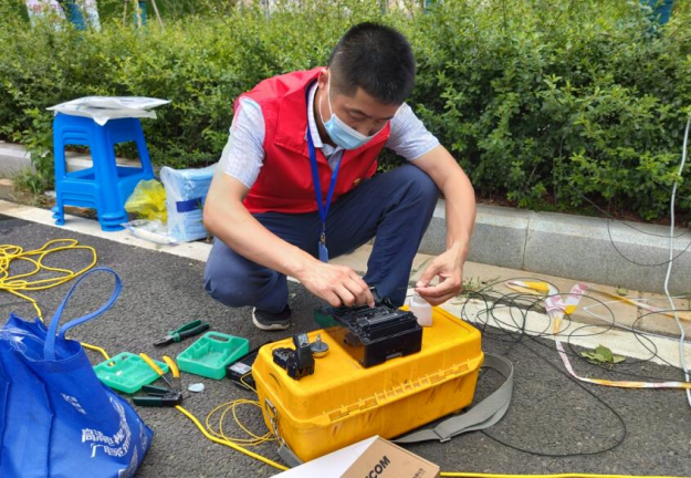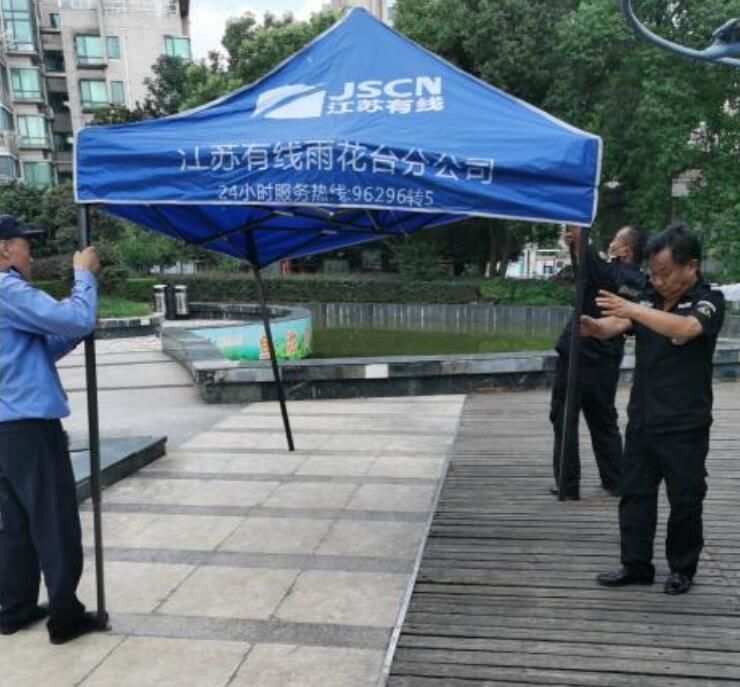 在核酸检测现场,江苏有线的社区工程师们分工协作,在各方面为检测工作提供帮助:有的携带专业设备工具,为工作人员和等候居民提供免费WIFI;有的配合安排服务保障车辆,以专人专车的形式帮助运输医护人员和检测设施;有的搬来了帐蓬、矿泉水、扇子、人丹等防暑降温用品,为防疫一线工作人员和群众“送清凉”。