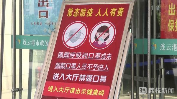 连云港市政务服务中心是直接面对市民群众的公共办事场所,是疫情防控重点区域。今天上午,记者在中心看到,场所进出口、对外业务办理区域等显著位置张贴“一米黄线”间隔指示标语,工作人员严格落实查验进出人员健康码,测量体温,佩戴口罩等要求,LED电子屏幕滚动播放疫情防控最新情况及宣传标语,提醒市民加强防范意识。
