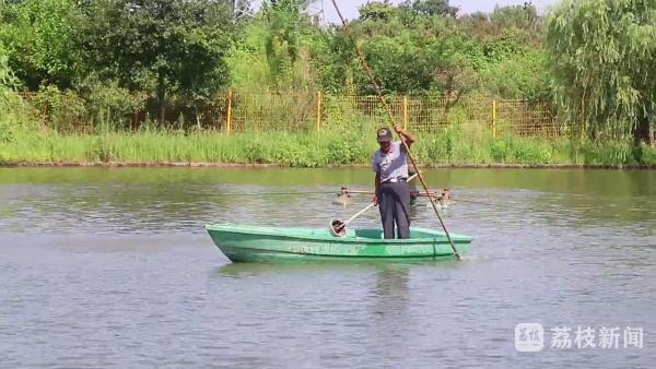 水产站技术人员来到后白镇刘德扣的水产养殖场时,工人们正划着小船在鱼塘巡查鱼的生长情况。今年他承包了100多亩鱼塘,不过这几天自家塘里的鱼出现了“浮头”的现象,甚至有些塘口还出现了少量死亡的现象,这严重影响了他的养殖效益。水产站技术人员根据现场检测分析,发现原因可能是由于近期高温期间管理不当导致池塘里的排泄物增多,再加上动植物以及水草的腐烂,造成了鱼塘的水质败坏。句容市水产技术指导站副站长张世奇介绍:“要适当的加高水位,池塘的水温高于35℃的时候,不适合大多数鱼类的生长,那么在高温季节将水位加高,一方面可以获得合适的水温,另一方面保持水质相对的稳定,最好根据不同的养殖品种将水位稳定在1.5-2米左右。”