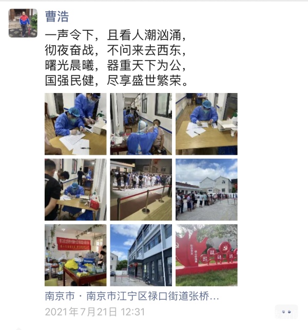 刷爆朋友圈的正能量,正是我们医务人员真切的心声:南京加油!江宁加油!他们用每一滴汗水来争取尽快完成全民核酸检测工作。