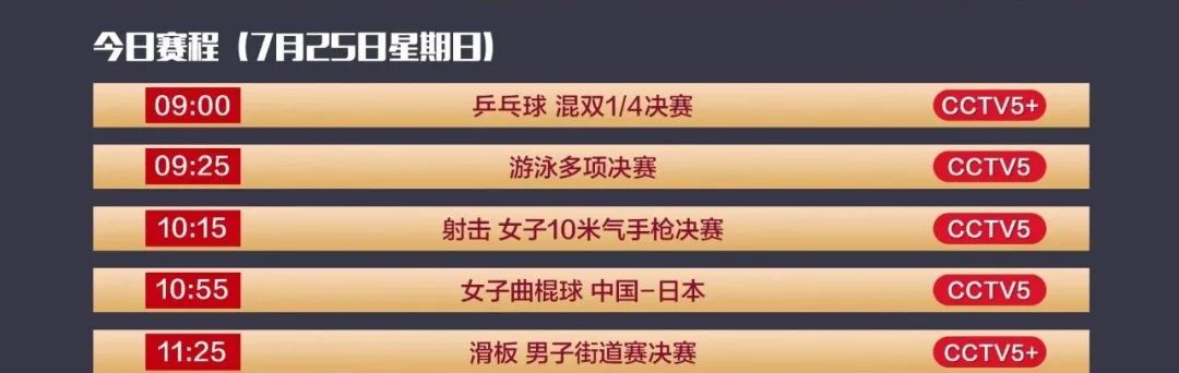 当天比赛日程全览