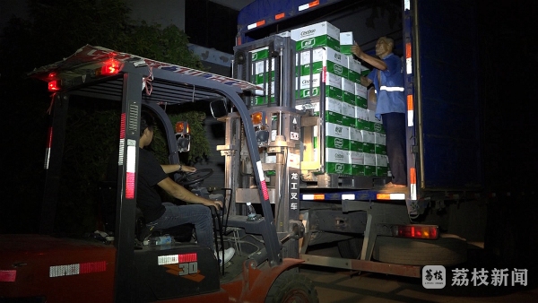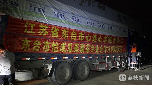 晚上9点钟,15000斤蔬菜、1000箱矿泉水装车完毕,车头悬挂“河南加油”横幅的货车缓缓驶离仓库,踏上前往河南省新乡市灾区路途。