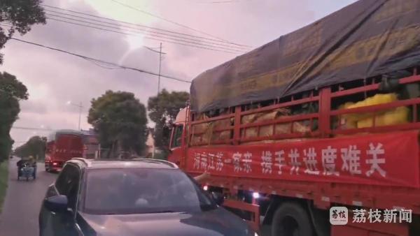 河南灾情牵动着全国人民的心,也成了海安市不少市民的牵挂,今天(7月25日)上午10点左右,由海安市滨海新区沿口村村民刘峰捐赠的两车20吨蔬菜,经过一夜紧急运输,顺利抵达河南省郑州市登封市实验高级中学。
