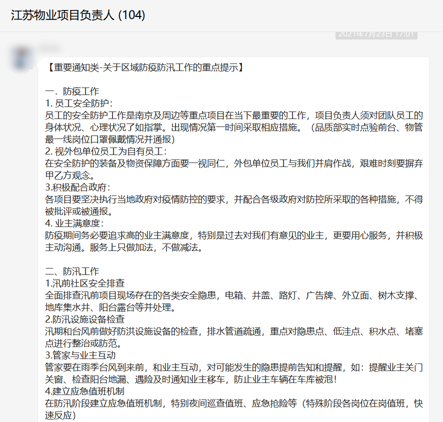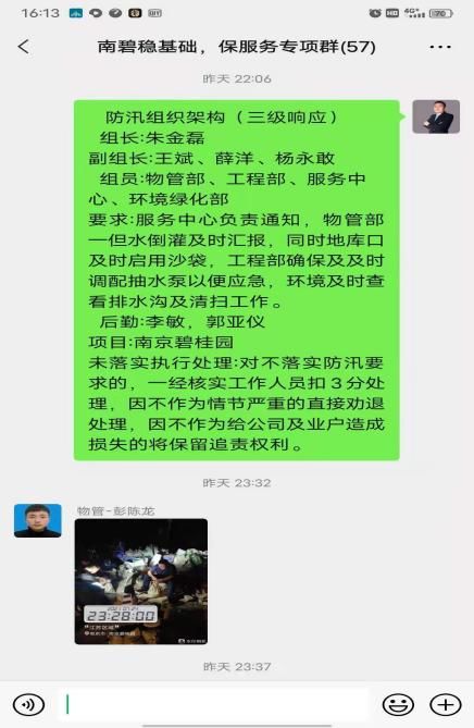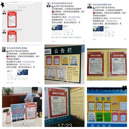 台风暴雨来临之际,各服务中心通过微信群向业主/住户发送暴雨防范温馨提示,提醒广大业主/住户做好相关防范工作。