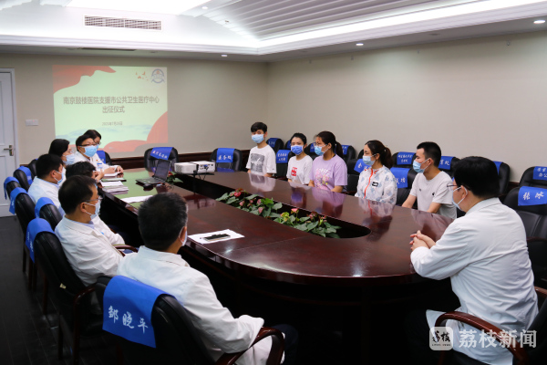 根据南京市卫健委安排,7月26日上午,南京鼓楼医院麻醉手术科汤壮、朱轩成,心血管内科徐华丽、消化内科荚玉云和妇科顾红5位医务人员驰援南京市公共卫生中心。其中汤壮、朱轩成、徐华丽、荚玉云4人是江苏援湖北医疗队队员,曾逆行武汉,有丰富的新冠肺炎重症患者救治经验。上午8:30,南京鼓楼医院为5位医务人员举行了简短的出征仪式。