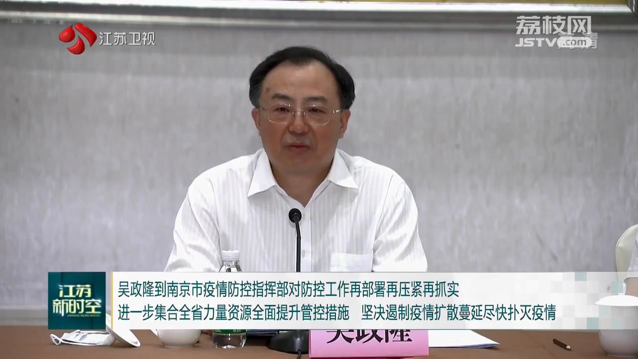 吴政隆强调,南京是全省疫情防控主战场,为进一步集合全省、全市力量资源,省疫情防控工作领导小组与南京市疫情防控指挥部整合形成统一高效、省市一体推进的指挥体系,根据疫情防控形势变化,及时会商研判,强化举措、狠抓落实。要全面提升管控措施。机场防控要进一步加强,最大可能疏散人员,疏散和集中隔离尽快到位,全覆盖高标准环境消杀尽快到位,后勤保障尽快到位,按照最严标准最严要求深入排查整治机场的风险隐患。社区防控要进一步加强,严格按照规定落实封闭小区管控措施,强化电梯等关键部位防控,更严谨、更细致、更规范做好集中隔离和居家医学观察,落细落实全市小区和自然村的防控工作。流调溯源要进一步加强,争分夺秒把潜在感染者找出来,继续将信息第一时间推送全省全国有关地方。核酸检测要进一步加强,提高质量、增强能力、提升效率,精心组织安排,采送检高效协同、快速流转。医疗救治要进一步加强,立足于早、关口前移,调集全省精兵强将全力以赴做好病人救治工作,最大程度防止"轻转重",并提升医疗机构防护等级,坚决防止院内感染。"两站一场一码头"、学校、养老机构、餐饮场所、农贸市场等重点场所以及公交、地铁、出租车和各类娱乐场所等密闭空间的管控要进一步加强。防范疫情向外输出要进一步加强,措施要更坚决、更严密、更周全,所有离宁通道、出省通道都要管控住、管到位,全力减少对全国抗疫大局的影响。