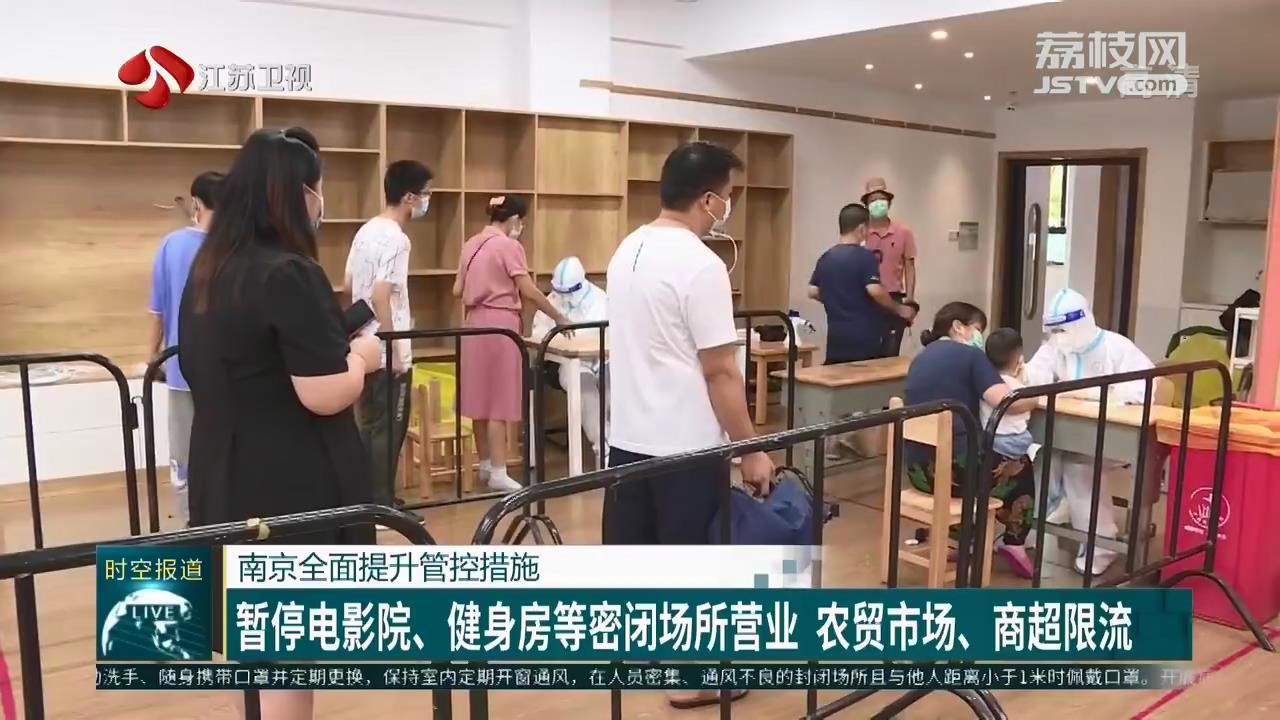 南京7月27日发布最新通告,要求非必要不开展线下节庆和大型会议、联欢、体育比赛等活动。减少聚餐,减少堂食。全市各单位食堂实行测温进场、分批分时段就餐等防控措施。暂停KTV、电影院、健身房、室内游泳馆、酒吧、洗浴场所、麻将馆、棋牌室等密闭场所营业,暂停培训机构(含托管)线下服务。农贸(集贸)市场、药店、批发市场、商场超市等重点场所要落实限流等管控措施。