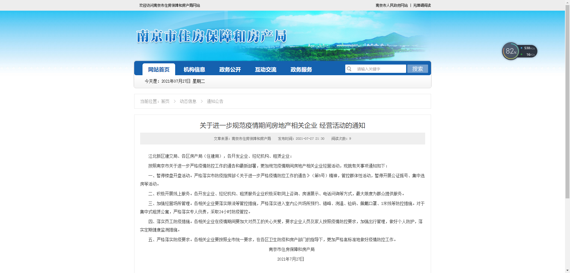 按照南京市关于进一步严格疫情防控工作的通告和最新部署,更加规范疫情期间房地产相关企业经营活动,现就有关事项通知如下: