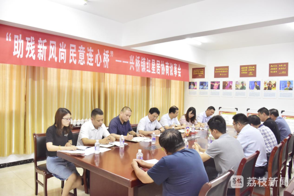 这是射阳县兴桥镇红星社区居委会“助残新风尚 民意连心桥”“有事好商量”协商议事活动现场。县政协常委、镇党委书记路红升和镇党委副书记倪德群、副镇长陈剑以及相关部门单位负责人及社区居委会协商议事会代表参加活动。活动围绕“助残新风尚 民意连心桥”协商议事主题进行了热烈的讨论,村民代表对他们关心的问题不断提问,镇村相关负责人一 一作了解答,村民代表普遍表示满意。活动开始前,盐城跃成铝业有限公司向红星社区居委会的残疾人困难家庭发放了救助金。