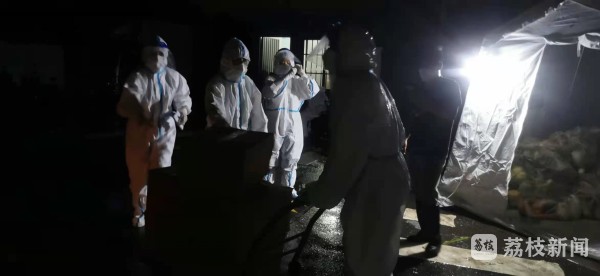 7月27日晚上8点,在台风“烟花”的影响下,大雨瓢泼。但是在江宁区禄口街道钟村社区春兰苑门口却异常忙碌:志愿者们穿着防护服,在社区书记的组织下有序搬运江宁区政府向封控地区百姓分发的物资。为防止物资被水淋到,志愿者主动请愿,形成一道搬运“流水线”,将180-189栋所有住户的物资,按量搬运至车上后,依次送至每栋楼的单元楼下,再根据登记信息送到各个百姓家里。