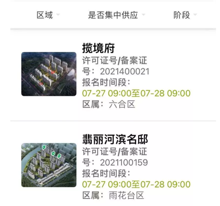 此外,7月27日公布销许信息的还有六合楼盘龙湖兴邦揽境,新领销许的房源套数为114套,包含人才房和无房家庭保障房各35套,均价为18200元/㎡,房源面积有106平方米、116平方米等。记者了解到,该项目的拿地时间为2020年12月,毛坯房销售限价为16350元/㎡,由龙湖和兴邦两家房企联合打造。据悉,在2021年第三季度南京拟上市新房的榜单中,该楼盘预计有228套新房入市,而本次只推出一半114套,因此,至9月底前该项目还将推出一批新房源。