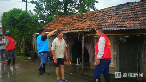 7月28日一大早,倾盆大雨下个不停,一夜焦虑不安的宿豫区曹集乡伍员里村民王其昌来到村里最低洼的小塘湖地区查看自家水稻受淹情况,正好遇到乡人武部部长、驻村干部董俊峰正带着村组干部在大堤上巡查险情,两人当场聊了起来,当得知在场的乡村干部巡查值守一夜没合眼,王其昌激动地说:“有你们这么好的乡村干部防守,俺心里就踏实了。”