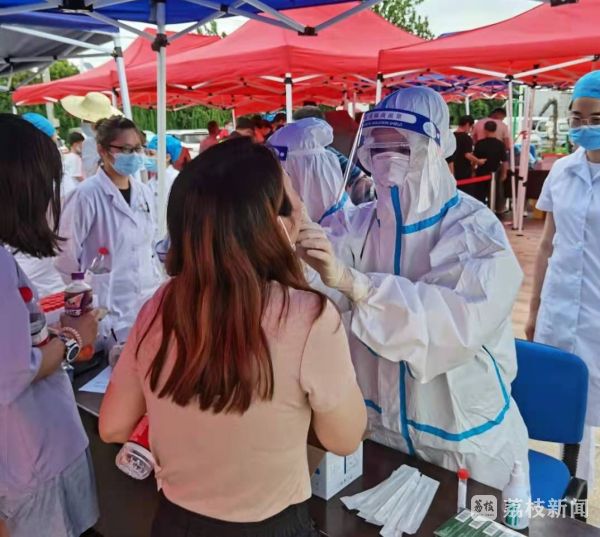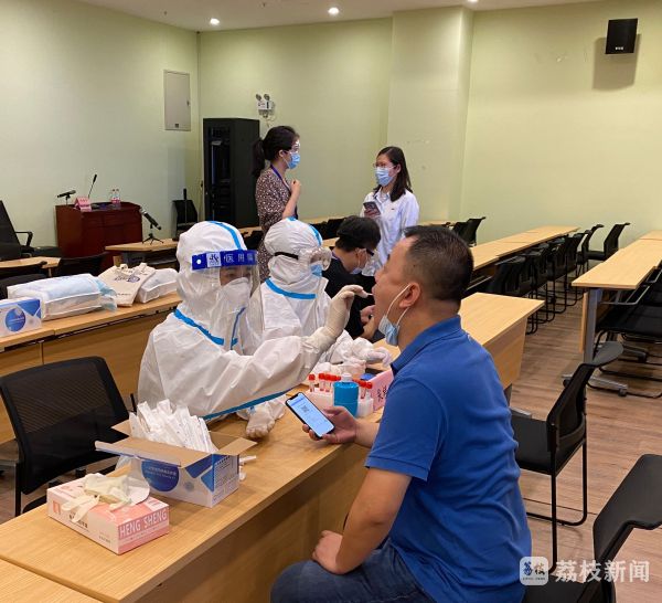 从上午9点多到晚上11点多,20位医务人员身穿防护服,完成核酸样本采集10000多人次。期间,季龙媚有过不舒服。她告诉记者,在江宁区潘村为居民采集核酸样本的时候,天气比较热。在采集到第100个人的时候,她出现了中暑的症状。后来就靠在椅子上缓了一会。但是由于排队的居民较多,所以休息了十几分钟后,又继续工作了,就希望赶紧完成核酸样本的采集!