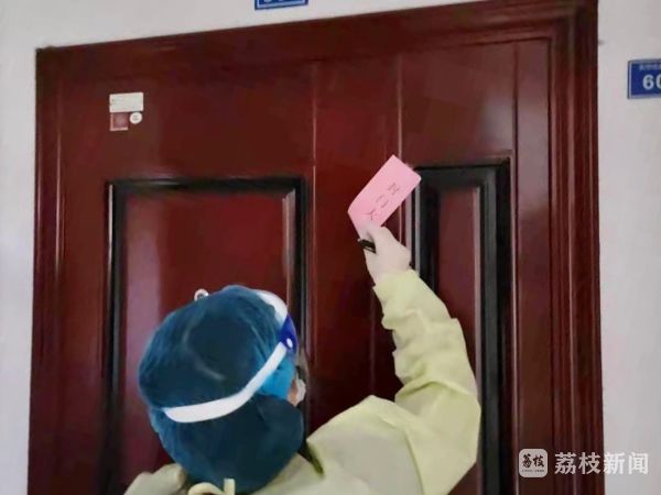 同样忙碌的还有一线的社区网格员。早上七点,南京江北新区沿江街道润江社区的网格员陈婷开始了一天工作。她身穿防护服,挨家挨户排查,并对重点人群实施居家隔离措施,贴封条、安装隔离监控。5个多小时的工作后,陈婷脱下防护服,双手已被汗水泡得发白发皱。