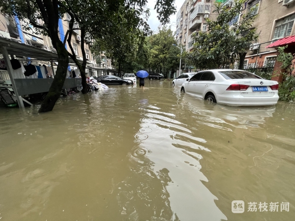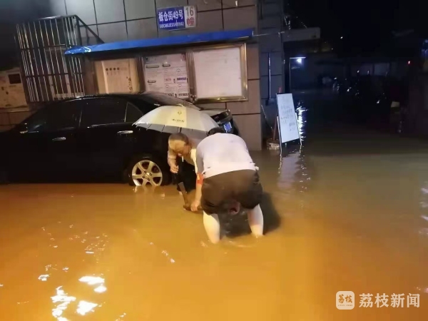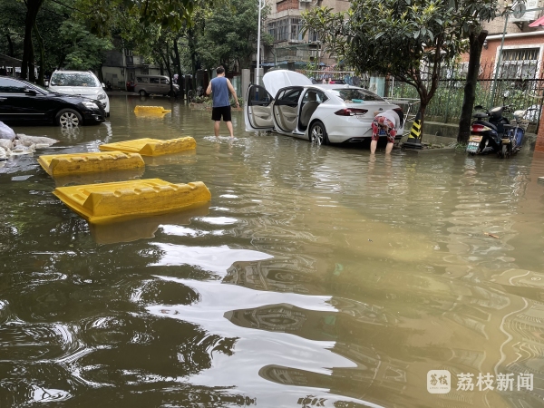 受第六号台风“烟花”影响,昨天27日深夜24点左右,突如其来的一场大雨,南京不少地方被淹,一片汪洋。今天(28日)早晨,玄武区富贵山小区居民周先生打开家门,小区内一片汪洋,给当地居民生活带来了很大不便。