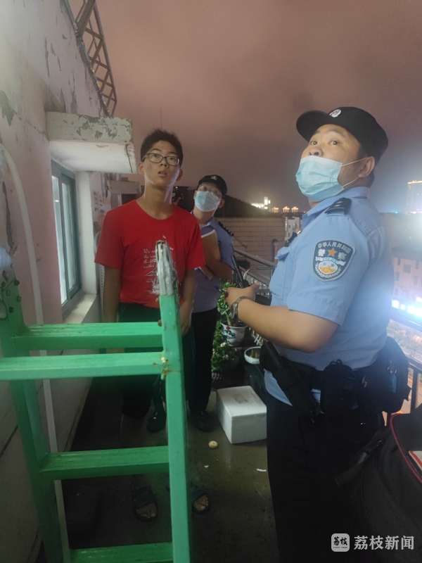 真的太感谢你们民警,不然我都不知道怎么办。7月28日晚上8点左右,家住盐城市大丰区汇豪家苑七楼的王女士向大丰区公安局金丰路警务站求助,由于受“烟花”台风影响,她家的雨棚被台风刮了翻了到楼顶边上,随时都有可能掉到楼下,王女士称她老公又不在家,他和家中的小孩无法拆下来。