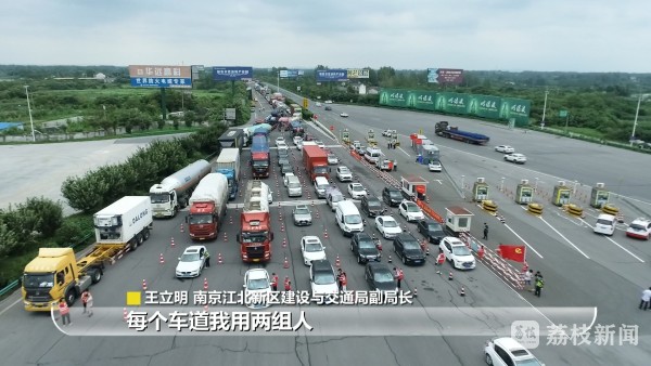 查验点负责人—南京江北新区建设与交通局副局长王立明告诉记者:“这个位置是南京到苏北或者皖北一个最重要的大通道,单日单侧车流量大概有两万多辆,高峰时期能达到四万辆。按照逢车必查逢人必检的话,拥堵是必然的。我们也想尽一切办法,将主车道三个车道变成六车道,每个车道用两组人;车流量大时,可能会有三组人或四组人。”