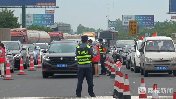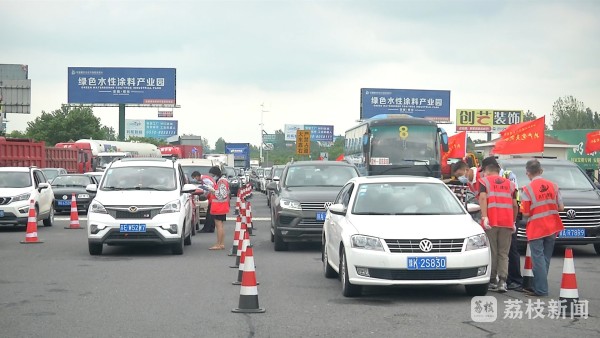 今天(7月29日)中午11点,记者在宁洛高速位于苏皖省界的曹庄收费站看到,交通、交管、江北新区等多部门联合设立了查验点。200多名工作人员分三班倒、24小时不间断地对途经这里对离开江苏的车辆和人员实施"逢车必查、逢人必验"。