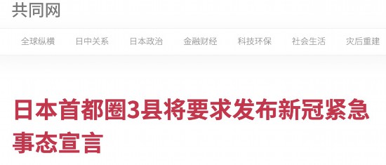 共同社28日援引日本政府相关人士的消息称,政府当天开始探讨对于新冠感染人数激增的埼玉、千叶、神奈川首都圈3县发布紧急事态宣言,预计最快将在30日的政府对策总部会议上决定。至于其他地区,政府则将继续观察疫情。报道称,上述3县的知事29日将举行磋商,若能达成共识,计划最快当天向政府要求发布宣言。