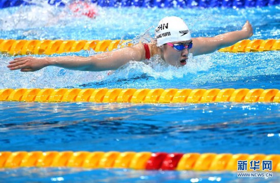 7月29日,张雨霏在比赛中。