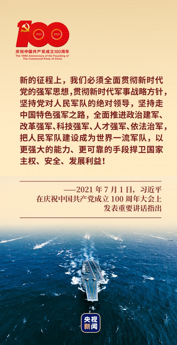 “把人民军队建设成为世界一流军队,以更强大的能力、更可靠的手段捍卫国家主权、安全、发展利益!”2021年7月1日,习近平总书记在庆祝中国共产党成立100周年大会上的铿锵话语,指引现实,启迪未来。