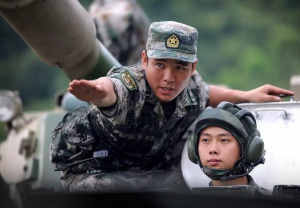 第七十四集团军某旅班长王锐驾驶战车以四档高速通过只比装甲车履带宽5厘米的车辙桥,而后在大坡度路段上全速冲坡、平稳过坎、快速离开。