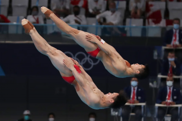 中国选手谢思埸/王宗源夺得东京奥运会跳水男子双人三米板冠军。