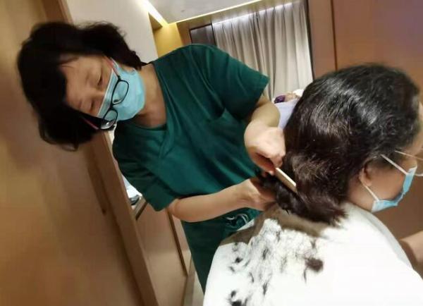 连夜剪去长发 老护士长亲自操剪