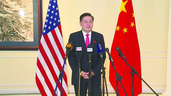 【环球时报综合报道】 在外界猜测两天后,有关中国新任驻美大使秦刚赴美履新的消息终于尘埃落定。他甫一抵达,就对中外媒体发表讲话:“我相信,中美关系的大门已经打开,就不会关上……我将按照两国元首除夕通话精神,同美国各界架起沟通、合作的桥梁。”由于几天前中美刚刚在天津完成一轮高级别外交官直接对话——那是一场“严峻的交锋”,有评论称,中国新大使发出了乐观、和解的信号。也有声音说,中国希望重修中美关系,但要根据自己的条件。秦刚是第11任中国驻美大使,出使美国之前任中国外交部副部长,但他最为人熟知的履历是两度出任中国外交部发言人,说出的诸多“金句”让人印象深刻。在不少人看来,这位中国外交官以坚定地维护国家利益闻名,而能言善辩的优势或许有助于他在新岗位上向美国传递中国的声音。然而,鉴于深陷低谷的中美关系的复杂性,无论谁来充当两国之间的沟通桥梁,都面临巨大的挑战。何况,这样的棘手局面主要是美方造成的,这从华盛顿对中国的定位以及最近美国诸多议员的反华动作就能清晰看出。