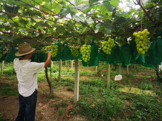 示范带动鼓励效益高的老果农,也为新果农提供借鉴引导。为了发挥榜样力量,淮安根据各县区葡萄种植的情况,每年设置葡萄种植示范基地(点)、科技示范户。“目前,全市共设有1个葡萄种植核心基地,4个示范点,6家科技示范户。”淮安推广示范基地主任、淮安市园艺技术服务站站长司少鹏介绍,通过示范样板功能,推广标准化种植技术和管理方式,让农民通过种植健康安全、优质高端的葡萄走上致富增收的乡村振兴路。