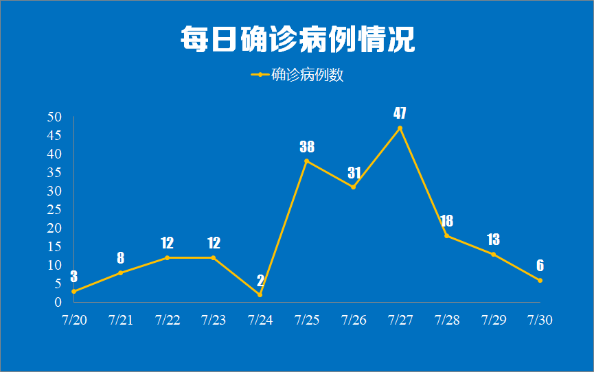荔枝新闻讯 据“健康南京”微信公众号通报,根据江苏省卫健委7月31日发布,2021年7月30日0-24时,南京市新增新型冠状病毒肺炎本土确诊病例6例,无新增无症状感染者;新增本土确诊病例中,轻型5例、普通型1例。有1例确诊病例由普通型转为重型,1例由重型转为普通型。