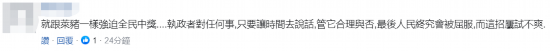 还有网友无奈:就跟莱猪(含瘦肉精的美国猪肉)一样强迫全民中奖.,民进党当局对任何事,只要让时间去说话,管它合理与否,最后民众终究会被屈服,而这招屡试不爽。↓