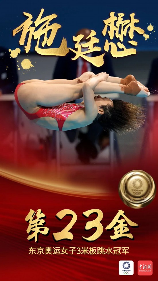 北京时间7月25日,跳水女子双人3米板决赛,施廷懋搭档王涵以总分326.40成功夺金,帮助中国跳水队取得东京奥运开门红。
