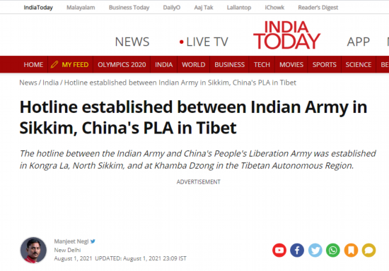 《今日印度》称,印中两国军队地面部队指挥官参加了新热线的开通仪式,并通过热线传递了双方友谊与和谐的信息。