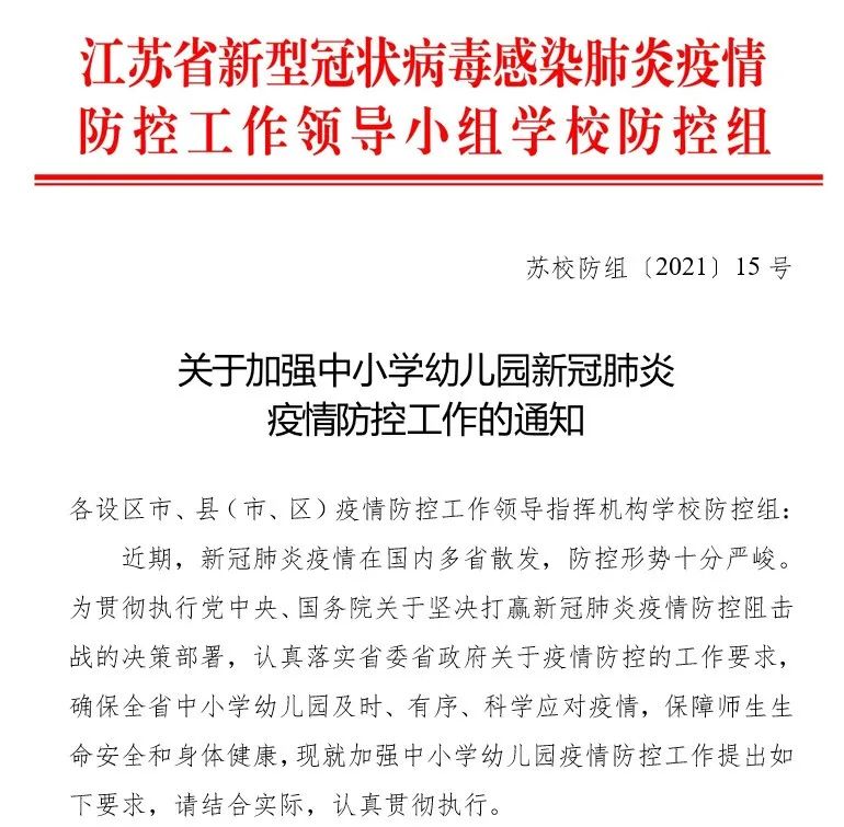 《关于加强中小学幼儿园新冠肺炎疫情防控工作的通知》
