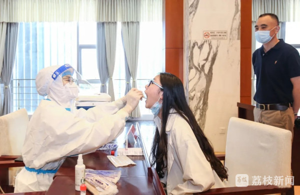 在全力做好疫情防控工作的同时,盐城经开区也正加快展开核酸检测工作,全力排查风险隐患。在该区招商中心二楼核酸检测采样点,记者看到,等待采样的各单位工作人员主动佩戴口罩,有序间隔排队,依次扫码登记,身着防护服的医护人员逐一为广大干部职工做咽拭子采集,现场秩序井然。