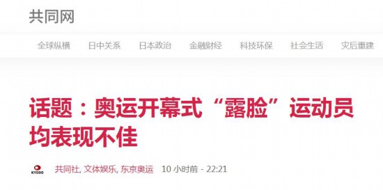 日本共同社2日一则报道聚焦东京奥运会日本代表团选手们的表现。报道称,尽管夺金捷报频传,不过开幕式上肩负代表日本“露脸”这一重任、表现备受期待的运动员似乎都表现不佳。报道认为,这些选手或因承受比赛以外任务的重压,没能发挥出最大实力,奥运赛场角逐的艰难程度再度凸显。
