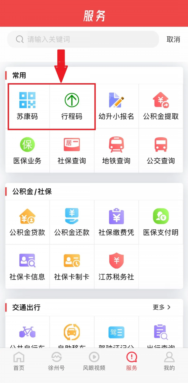 点击“苏康码”和“行程码”