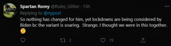 有网友难掩失望:“所以他一点都没变,即使拜登正在考虑封城,因为变异病毒(仍)在激增。奇怪了,我原本认为我们在这方面是一块(应对疫情)的。”
