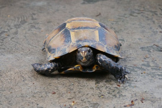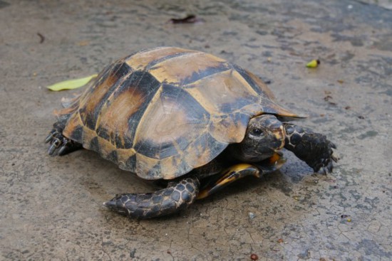 凹甲陆龟属于国家二级重点保护动物,栖于热带和亚热带的山地,已被列入《世界自然保护联盟濒危物种红色名录》。