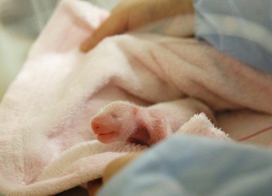 8月2日在法国博瓦勒野生动物园拍摄的中国大熊猫“欢欢”产下的幼崽。新华社发(博瓦勒野生动物园供图)