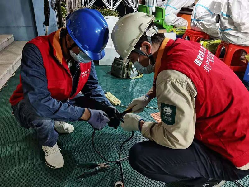 两人勘察现场,确定供电方案后,立刻展开施工作业,穿管放线、管卡固定、接入电源……一切都在安全有序中进行。