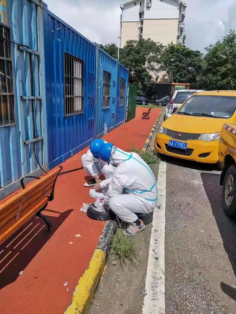 人员信息采集器有电了,无线wifi电源也接好了……两人一阵紧张忙碌后,为社区党群服务中心核酸检测点接通了电。